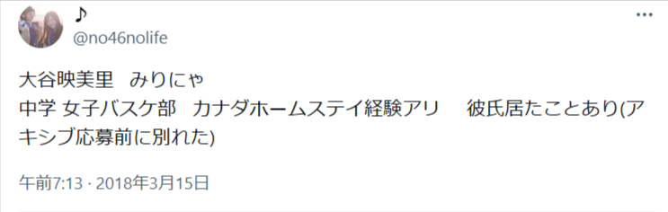 Xで「中学時代に彼氏がいたことがある」といった投稿が見られたことから、当時交際していたのではないかと噂になりました。